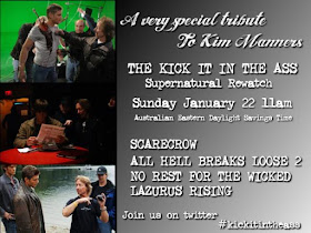 Bugs, where Kim insisted on sitting in the bee filled room in nothing but shorts and a t-shirt, because Jensen and Jared had no protective clothing either. This story is still a vigorously told at conventions, all these years later. In 2011, the